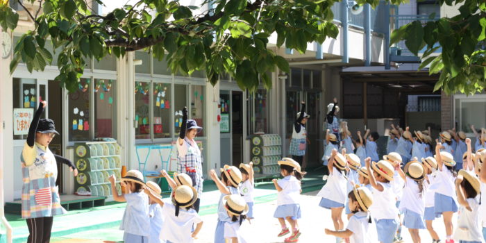長い夏休みが終わり、今日から幼稚園は新学期を迎えました。 雲ひとつなくすがすがしい天気のなか、子どもたちは元気いっぱい、朝の体操でスタート!ё 今日は始業式ということで先生たちのお話を聞きまし …