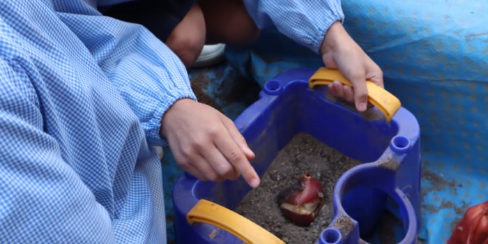 最近は日が暮れると肌寒くなってきましたが、昼間はまだまだ暖かく、子どもたちも元気いっぱいにお外で遊んでいますё みんなでチューリップの球根を植えました。 チューリップの花は …
