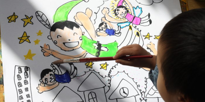 今日年長組と年中組ではお絵描きを楽しみました。 年中組のみんなは”笠地蔵”を。年長組のみんなは”ピーターパン”の絵本をテーマにして、それぞれ感じたイメージを素直に絵に表現してみました。 みんな、子どもらしい個性とタッチで …