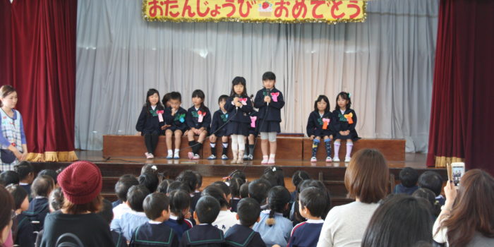 今日はとっても良いお天気で、みんな朝からお外で元気に遊びました。 製作活動を楽しんでいる年少さんё 毎日いろんな物を作っています。 そして午後からお誕生日会がありました。 お誕生 …