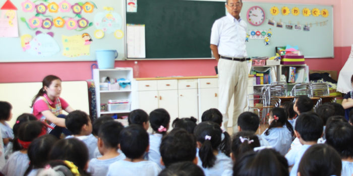 今朝は幼稚園でもセミの大きな鳴き声が聞こえてきました。 園児のみんなはセミに興味津々ё 「これは鳴いているから男の子だよ」 年長さんたちが捕まえたセミをもって小さなお友だちにみせてあげていました。 季節を感じながら、幼稚 …