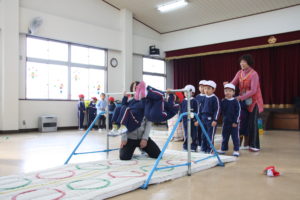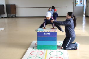 今日はマットやとび箱を使った運動や、鉄棒で逆上がりの練習や縄跳びの練習をしたりと、たくさん体を動かしました。