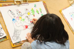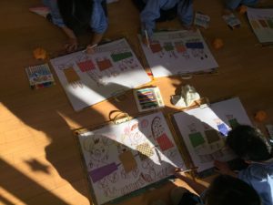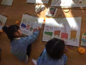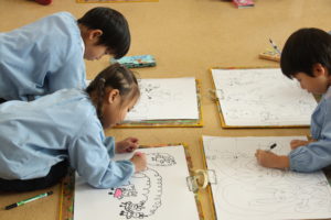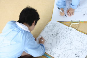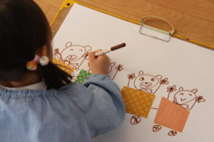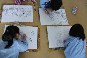 今日年長組と年中組ではお絵描きを楽しみました。