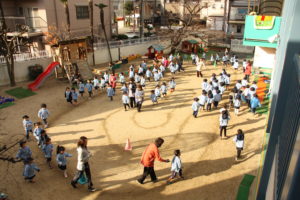 今幼稚園では、2月に行われる発表会に向けて、歌や合奏などの練習をしています。