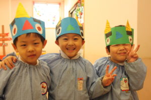 こちらは2月の節分の日で使う予定ですが、園児たちはらうれしくなって、お面をかぶって大はしゃぎでした。