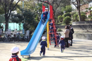 聖天山公園に到着したあとは、広い公園にある遊具や自然のなかで、お友だちや家族の人たちと一緒にたっぷりと遊びました。