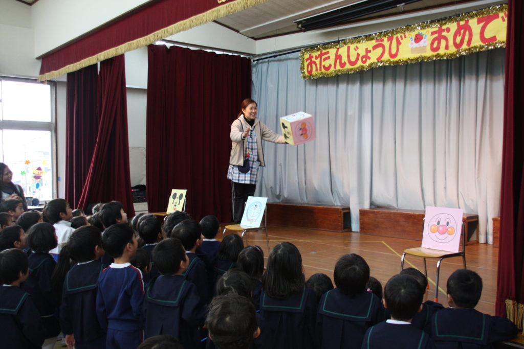 201702/02 お誕生日会 ブログmatsumushi 今日はお誕生日会がありました。 ステージでマイクを使って、お客さんに向けて自己紹介やお歌を披露してくれました。 また、クラスのみんなからも、お祝いやお歌をプレゼントしてくれました。 最後に、先生が楽しいサイコロクイズゲームをしてくれ、みんな大盛り上がりでしたё コメントは受け付けていません。