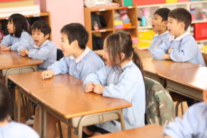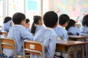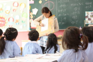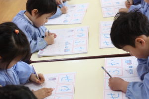 ひらがなの書き方やことば遊びをする年中組さん