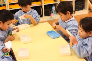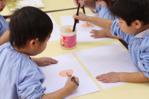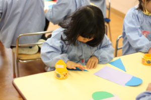 ロケットの制作やお顔の絵を描いて楽しむ年少組さん