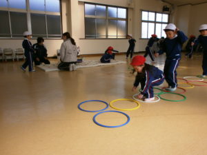 今年度最後、そして年長クラスのみんなにとっても幼稚園で最後の体操の時間でした。