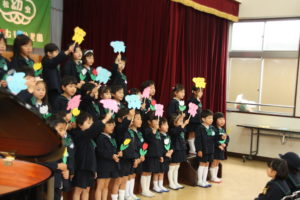 進級した年長組のみんなが、新しいお友だちにお歌を披露してくれました。