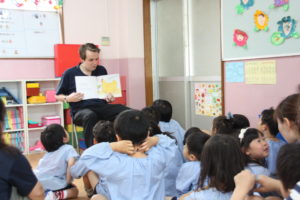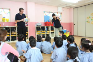 今日は年長クラスと年中クラスでは英語レッスンがありました。