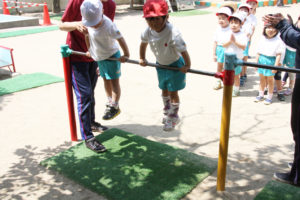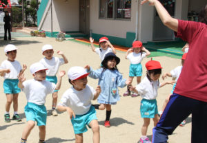 今日、年中組と年長組はカワイ体操の時間がありました。