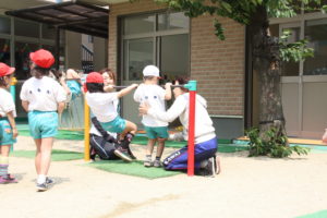 今日も天気が良かったので、お外で走ったりスキップしたり鉄棒したりと、たっぷり体を動かして楽しみました。