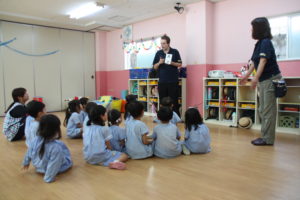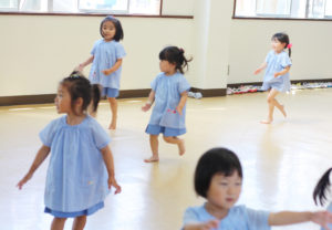 昨日年少組さんは、みんなと一緒にリトミックをしました。