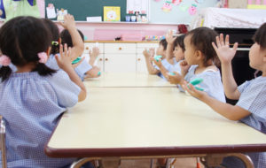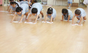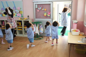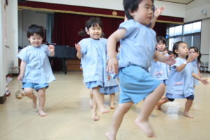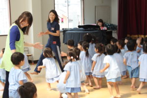 年少組さんは、リトミックをしたり、楽器のカスタネットでリズム打ちを楽しみました。
