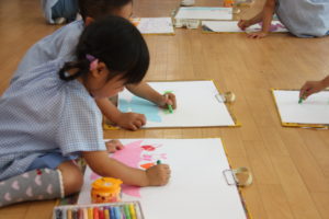 年中組さんは絵画を楽しみました。今日はフルーツポンチを描いてみました