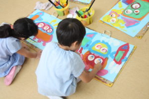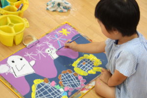 今日は絵画の先生が来てくれました。年中・年長組のみんなとお絵描きを楽しみました。