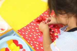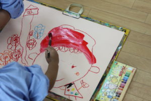 お絵描きといろんな製作活動中の園児たちё 一体どんなのができあがるのかな?