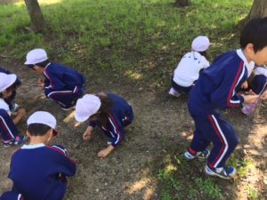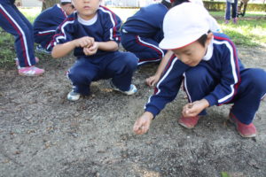 みんな色んな形のどんぐりを見つけて拾い集めました。