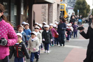 幼稚園をスタートして、先生と一緒に全園児で近くの聖天山公園まで走りました。