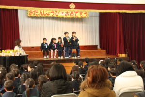 お誕生日の子どもたちが、ステージのうえで、お祝いしてくれるたくさんのお客さんへ自己紹介や自分の夢、お歌を披露してくれました。