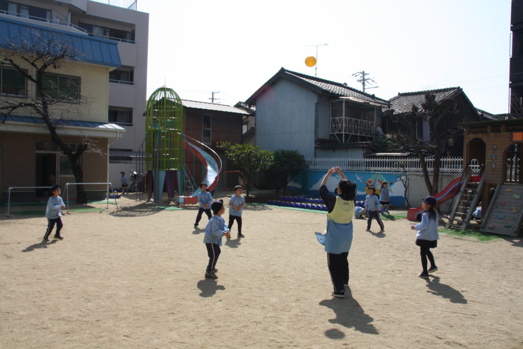 ドッヂボール遊びが日課になっている年長さんたち