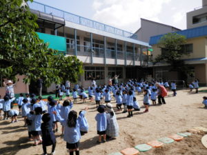 年少組の新しいお友だちが幼稚園に来て一週間が経ちましたが、少しずつ園の生活にも慣れてきた様子で、朝の体操やご挨拶も元気に張り切って参加してくれていますё