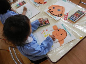 似顔絵を描いている年中組さんё