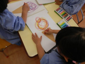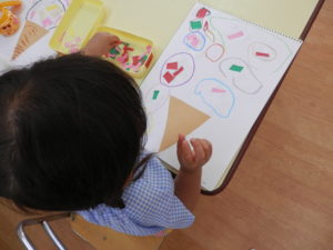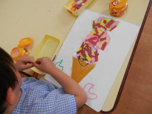 年少組さんはお絵描きでアイスクリーム作りをしました。