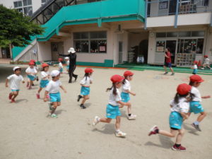 年中組さんと年長組さんはカワイ体操で体をたくさん動かしましたё