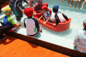 そんな中、松虫幼稚園ではプールあそびが始まりました。