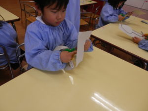 次はハサミでちょきちょき。。何ができるかな??