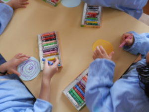 いろんな色のクレパスでグリグリ・・ぐるぐる、好きなように描いてみよう!