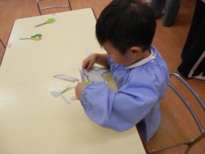 年少組さんのお部屋では、みんなで制作を楽しんでいました。