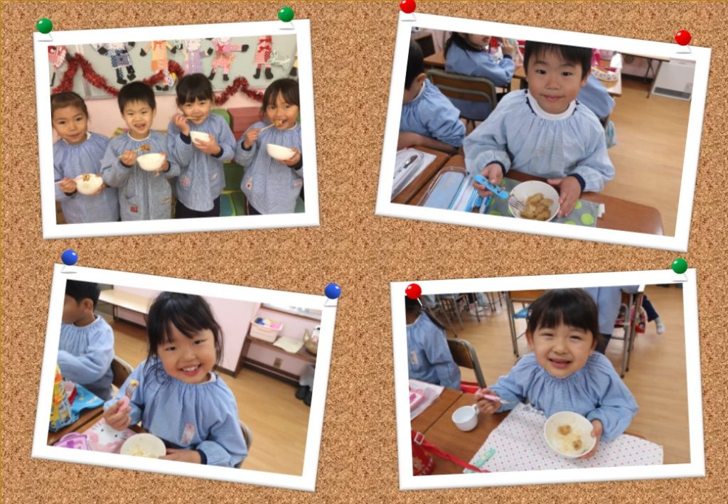 おやつには、できたての”きな粉もち”をみんなで食べました。