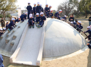 聖天山公園に到着したあとは、広い公園にある遊具や自然のなかで、お友だちや家族の人たちと一緒に遊びましたё