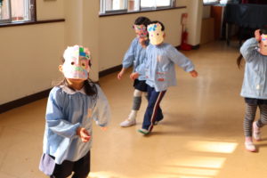 今日は鬼さんのお面等を持って帰ったので、お家でもぜひ使って楽しんで下さい。
