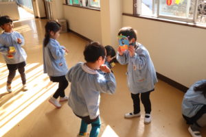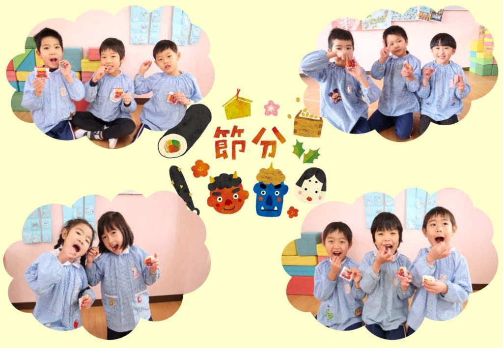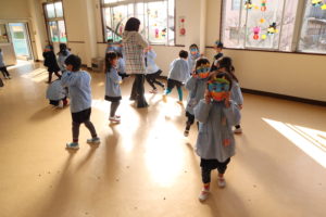 2月3日は節分の日ということで、幼稚園のお友だちで豆まきをしました。