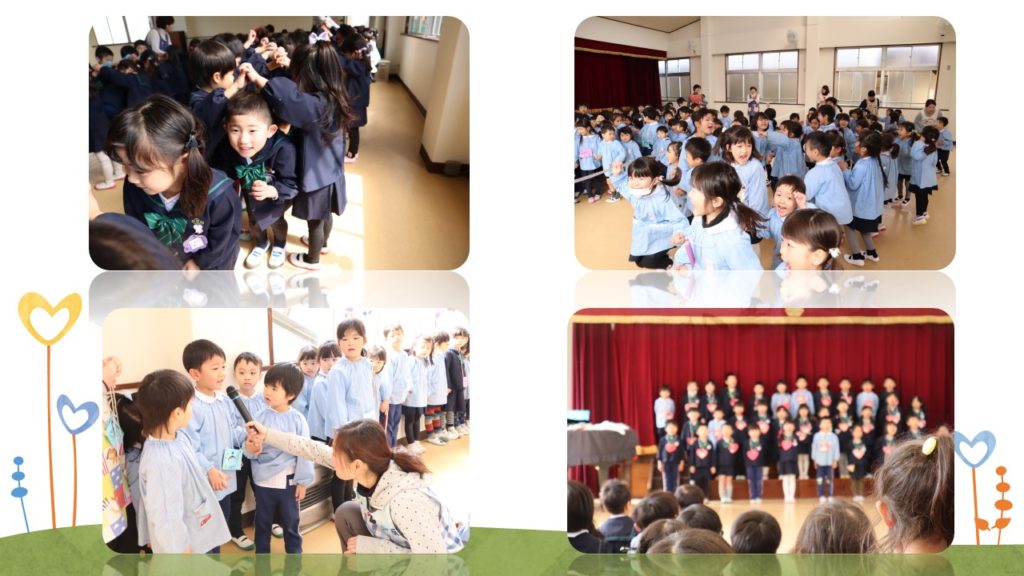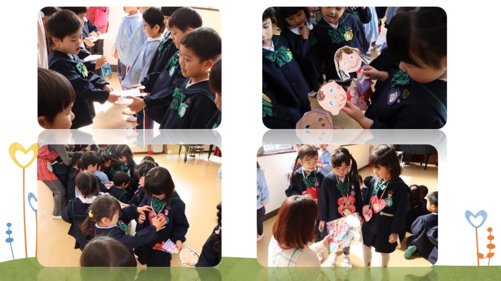 年長組と年中、年少組のみんなでそれぞれで作ったかわいい似顔絵カードをプレゼントё