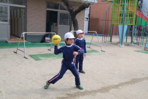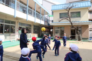 今日は年長組さんにとって最後のカワイ体操。ということでみんなでドッジボールを楽しみましたё