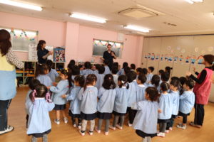 昨日は英語のレッスンがありました。年少のいちご組・もも組のみんなも一緒に参加をしました★☆★