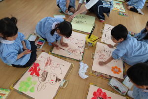 金曜日は、絵画の先生といっしょに、クレパスと絵筆でお絵描きを楽しみましたё