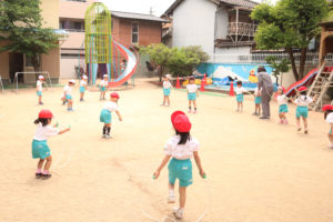 体操の時間では、縄跳びや鉄棒にチャレンジ中の年中組さんё