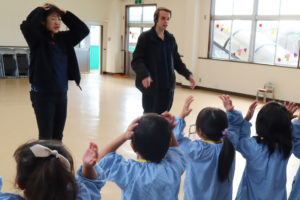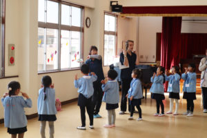 年中組と年長組のみんなは、ライアン先生たちと一緒に英語あそびを楽しみましたё