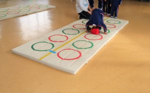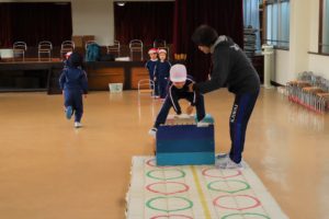 今日のカワイ体操では、マットやとび箱を使ってたくさん体を動かしました。