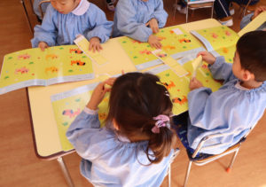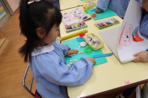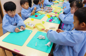 年少組ではワークあそびや、粘土あそびやお絵かきに夢中になっています。