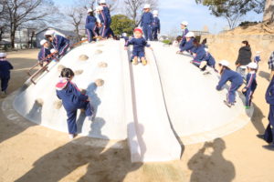 聖天山公園に到着したあとは、広い公園にある遊具や自然のなかで、お友だちや家族の人たちと一緒に遊びましたё