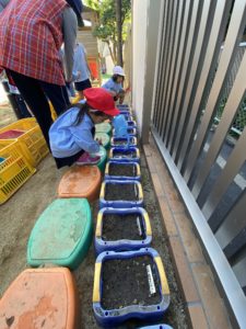 みんなでチューリップの球根を植えましたё