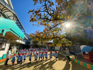 12月になりました。幼稚園の木々は紅葉しすっかり冬らしい色合いになってきました。